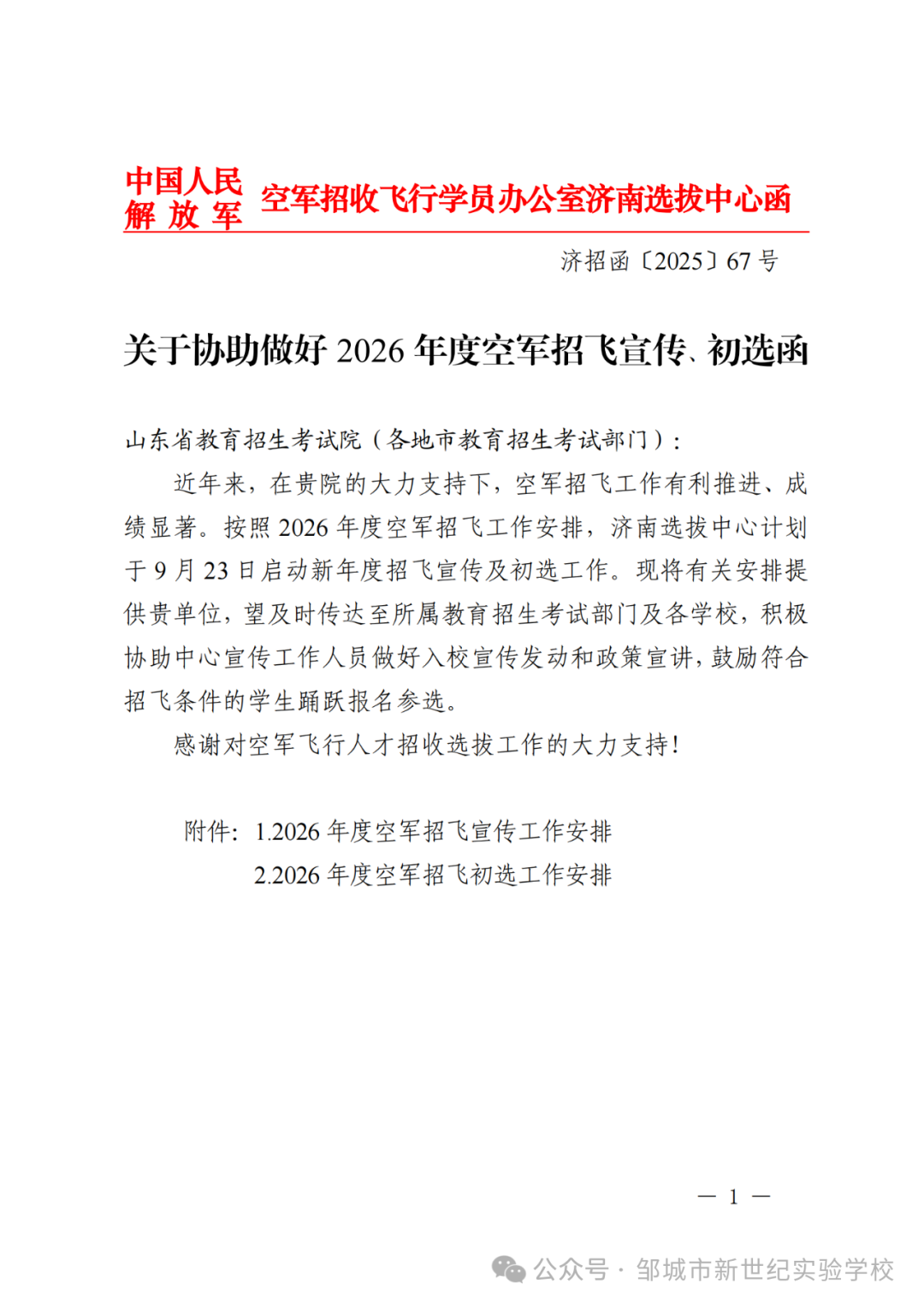 从邹城的校园到祖国的蓝天,只差这关键一步。北大新世纪高级中学愿做你飞行梦想的"助推器",期待与你一同见证"凌云壮志今霄起,敢驾银鹰卫九州"的壮阔时刻!