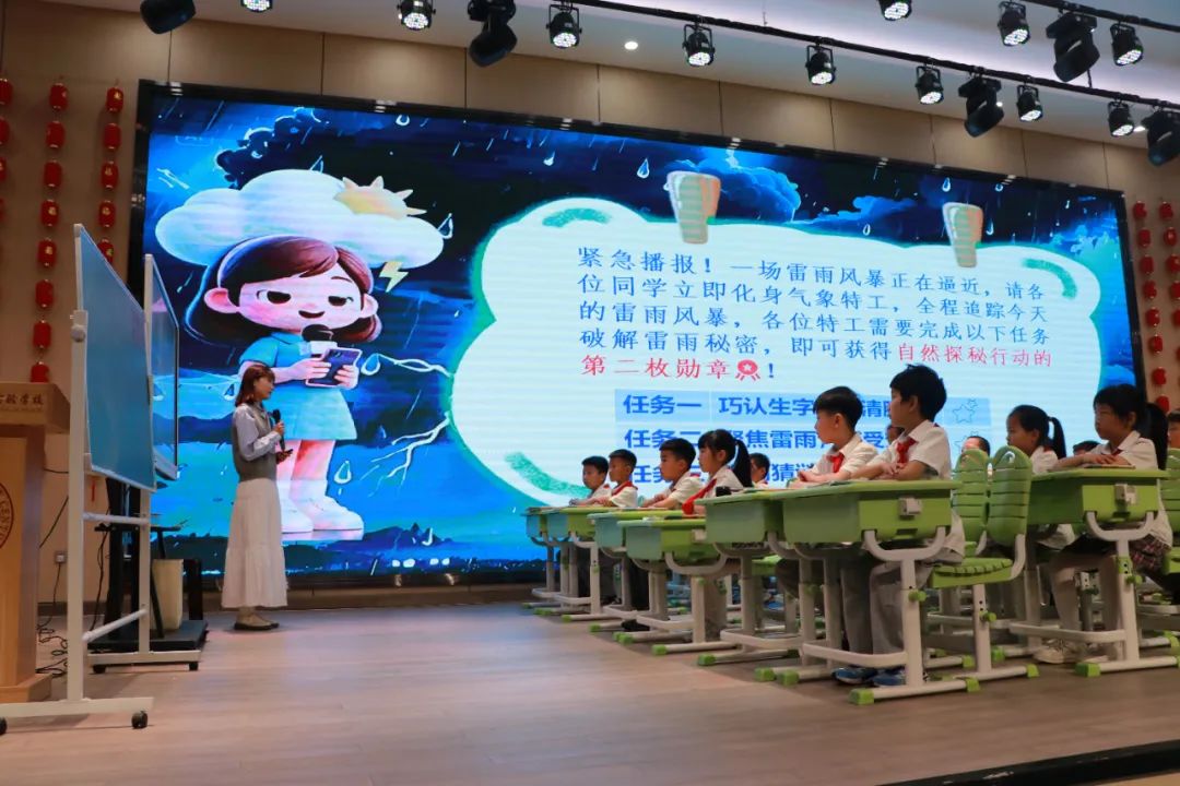 当二年级的孩子化身“气象观察员”,《雷雨》不再只是一篇课文,而是通往自然与文字世界的密钥。方老师的课堂以“游戏找不同”为引,串联起雷雨前、中、后的景象,借蝉的静默与欢鸣、蜘蛛的“逃”与“坐”,让孩子们触摸文字背后的情绪变化;在追问“垂”与“落”的差异时,悄然完成对汉字精妙的审美启蒙。