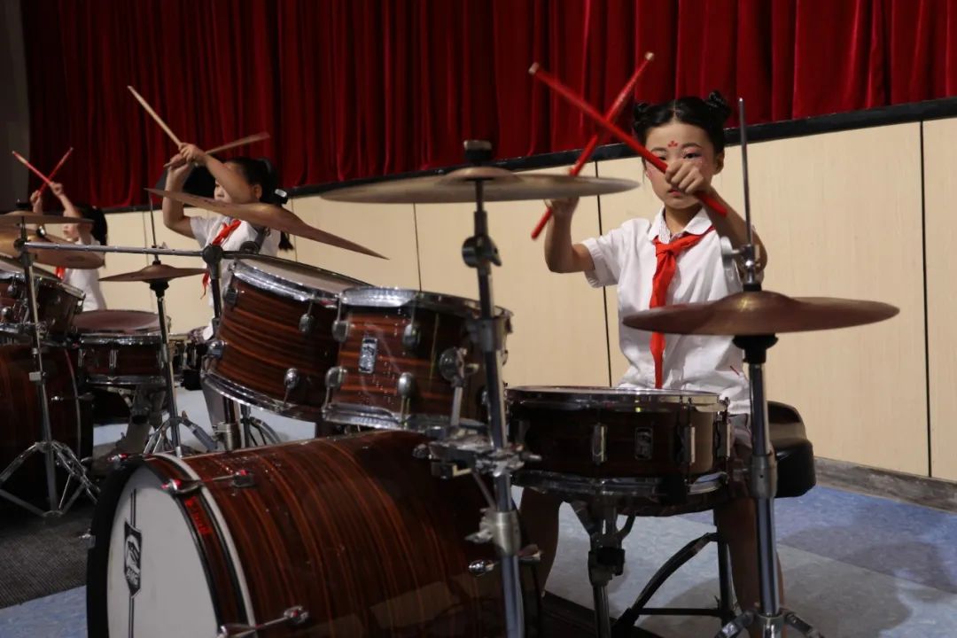 架子鼓表演作为开场节目,瞬间点燃了现场的气氛。小鼓手们充满激情地敲击着每一个节奏,有力的鼓点震撼着在场的每一位观众,展现出新世纪学子的活力与朝气 。
