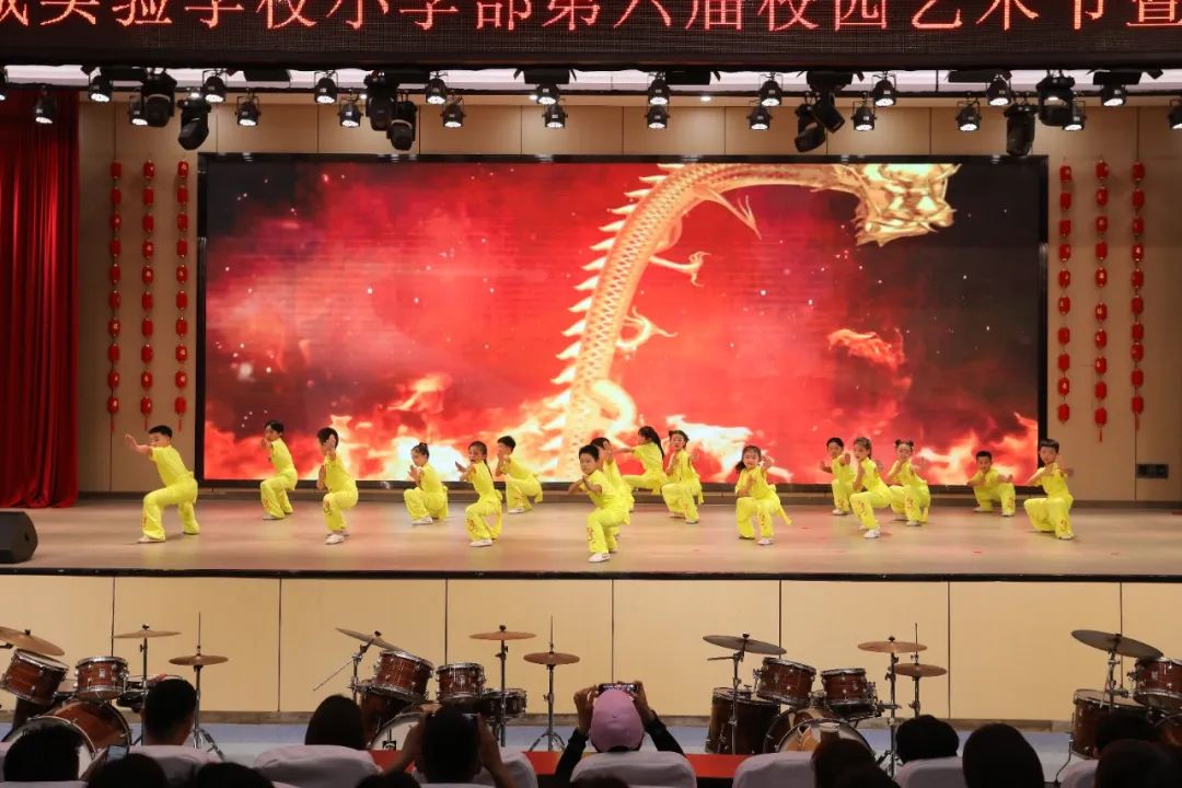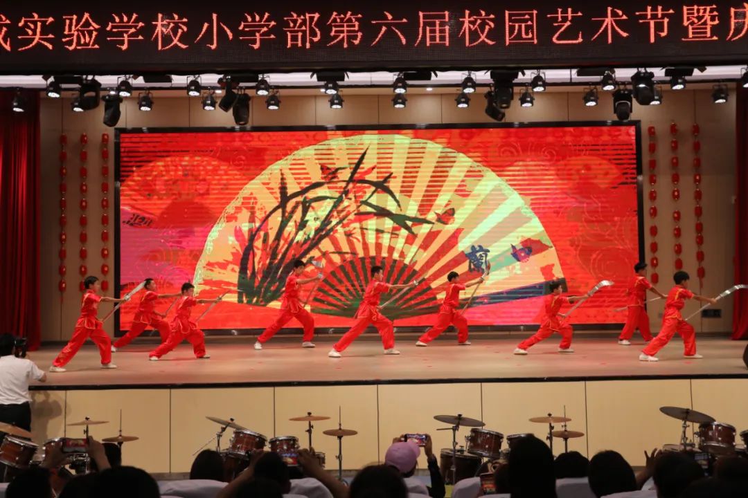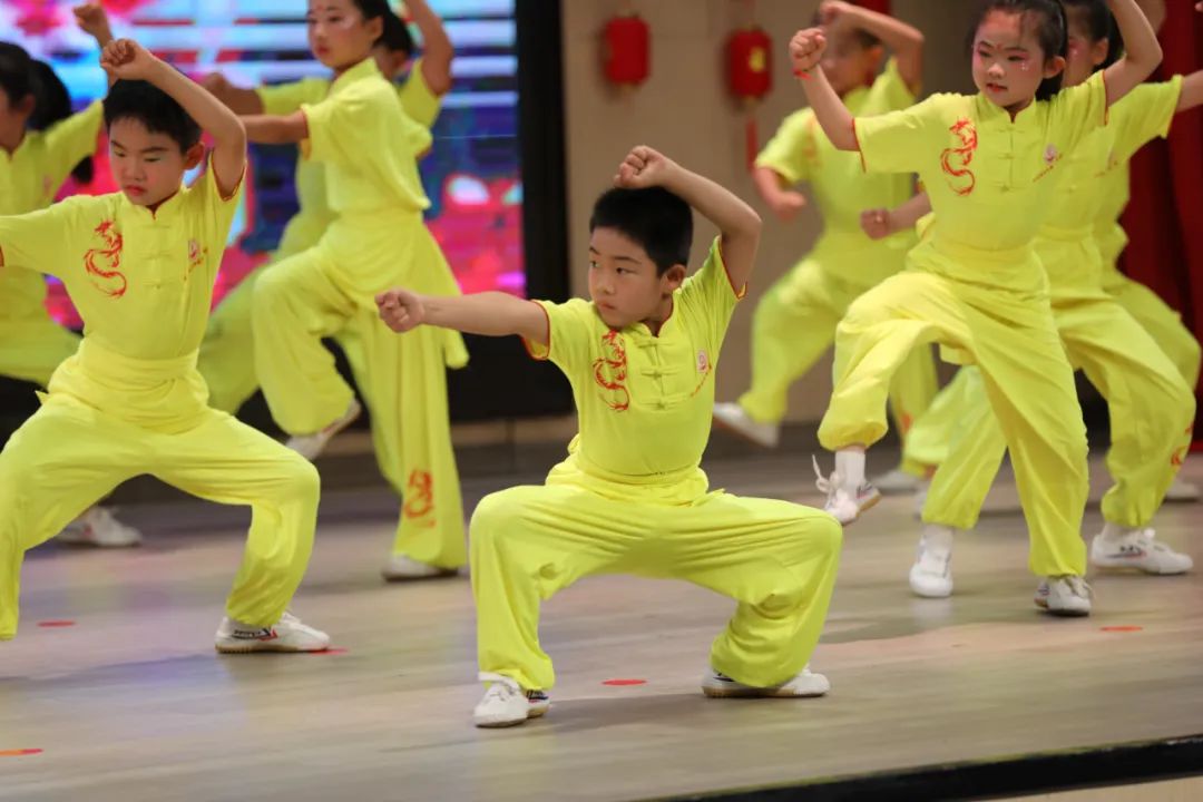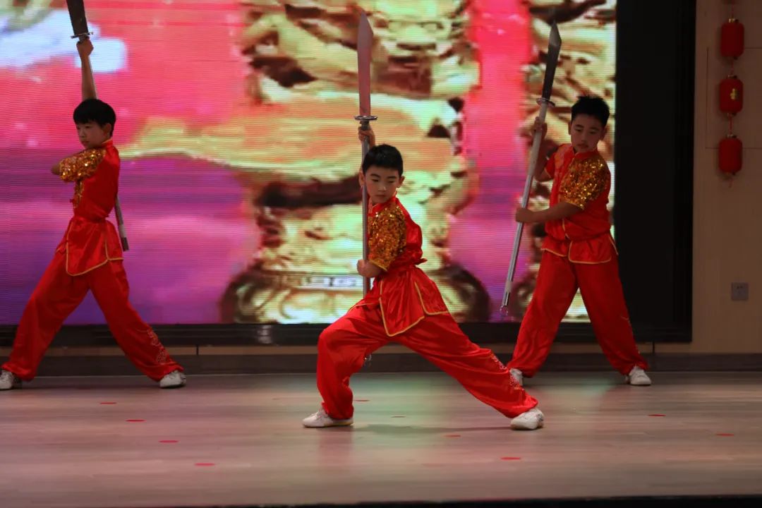 武术表演中,孩子们一招一式刚劲有力,虎虎生风,充分展现了中华武术的博大精深,也展现出新世纪学子坚韧不拔的精神和强健的体魄。