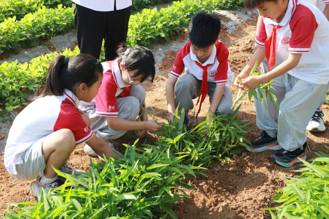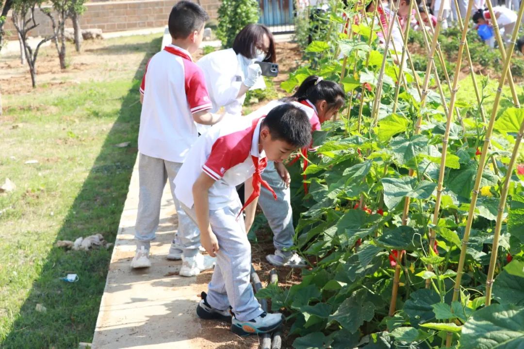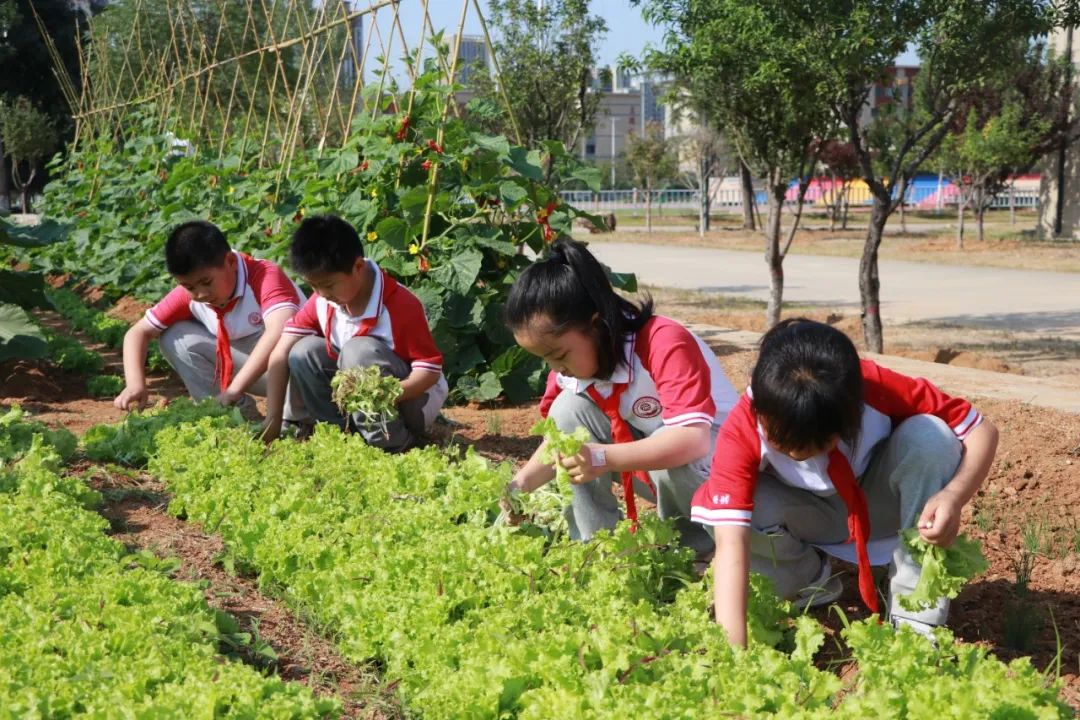 在老师的带领下,孩子们满怀期待地来到学校的蔬菜种植园。一进入菜园,孩子们就被眼前生机勃勃的景象吸引住了,嫩绿的空心菜、饱满的生菜、圆润的茄子……每一种蔬菜都像是大自然馈赠的珍宝。