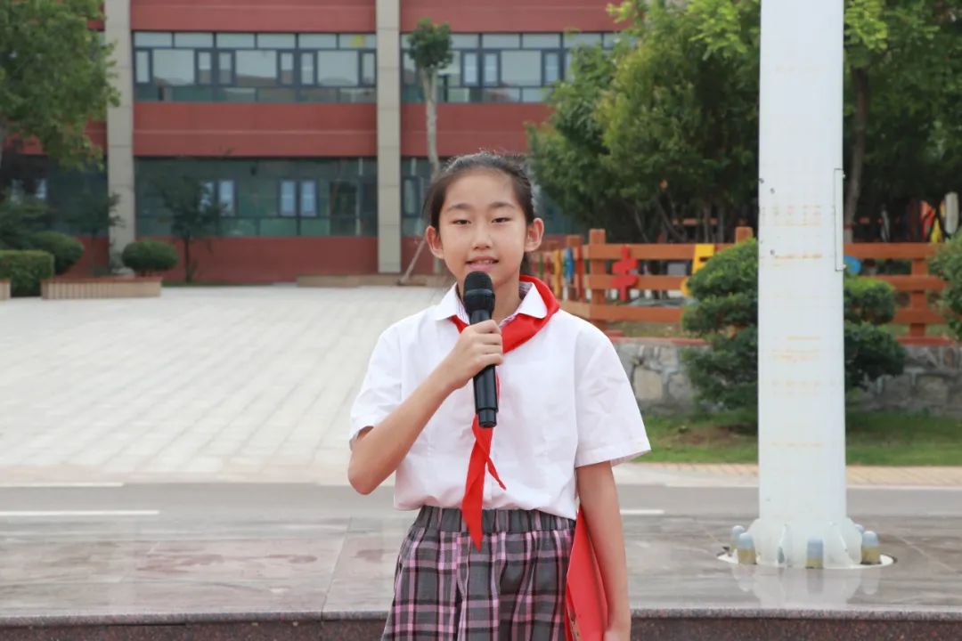 清晨,阳光洒满校园,全体师生整齐列队于操场。在激昂的国歌声中,五星红旗缓缓升起,随风飘扬,全体师生庄严肃立,向国旗行注目礼,唱国歌,拉开了本次升旗活动的序幕。