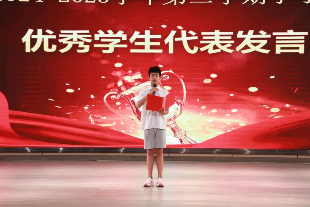优秀学生代表陈泽锦同学站在台上,自信满满地分享自己的学习经验和方法。他提到,学习要有明确的目标,每一步都要脚踏实地。他的发言让同学们受益匪浅,台下不时响起阵阵掌声。大家从他的分享中汲取了力量,也明确了自己努力的方向。