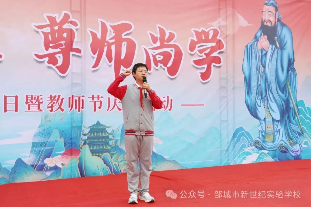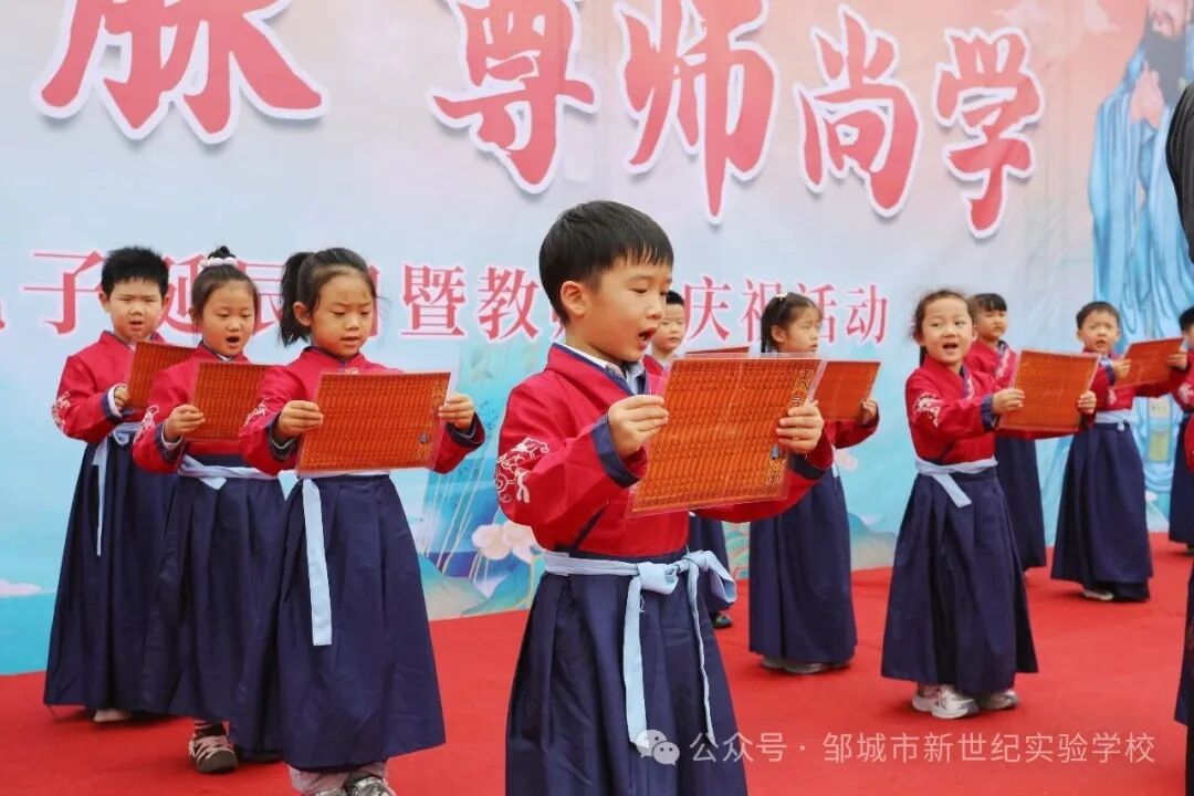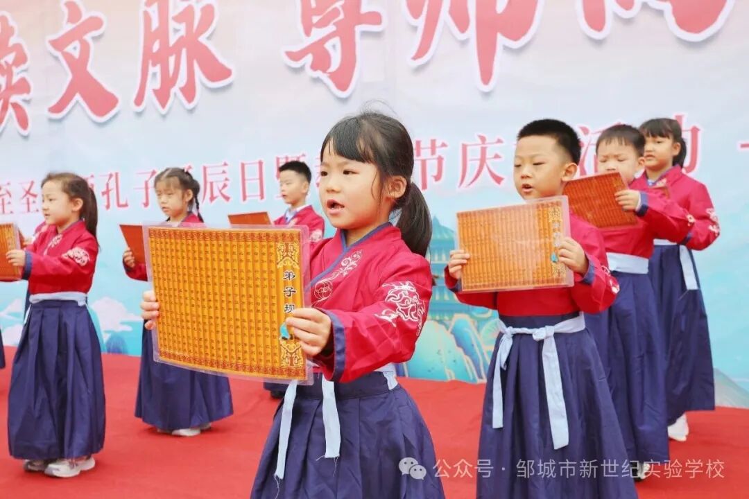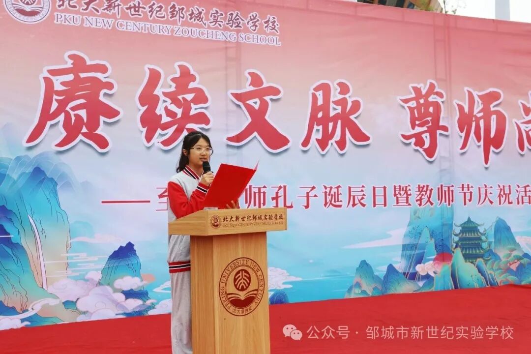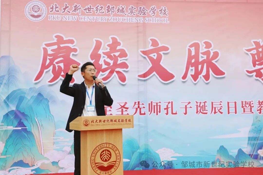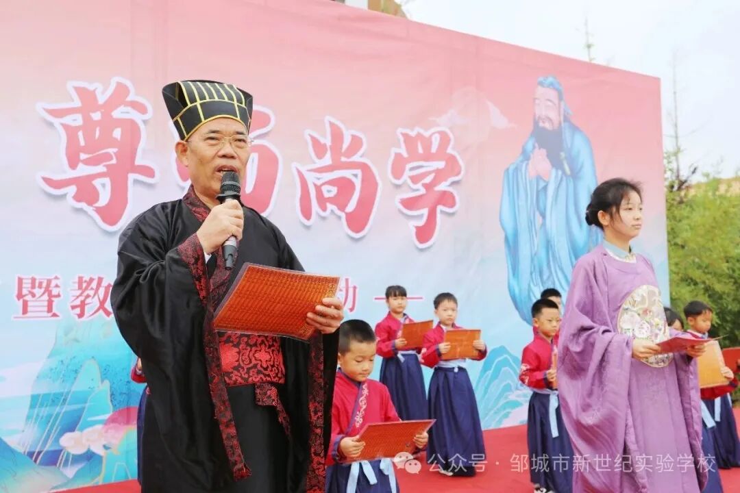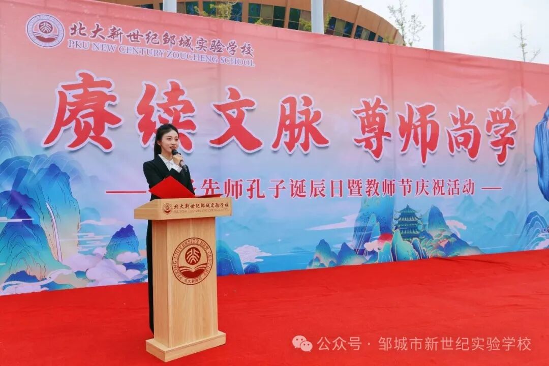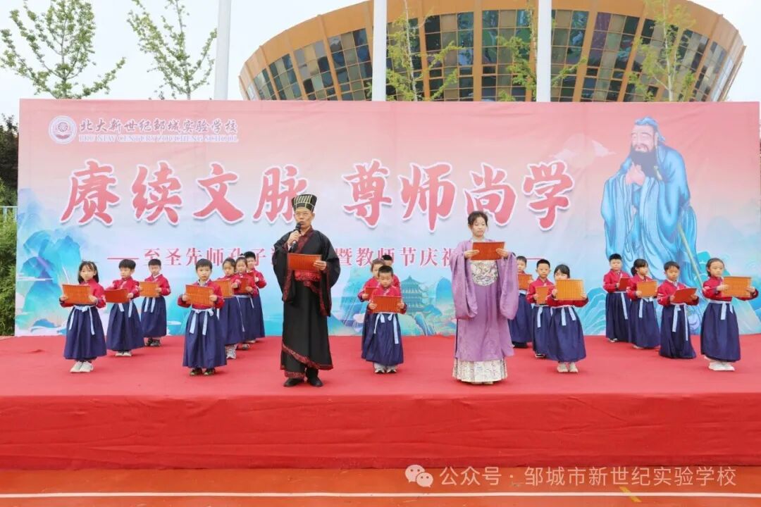 仲秋时节,文脉流淌。邹城市北大新世纪实验学校隆重举行“赓续文脉,尊师尚学”孔子诞辰日暨教师节庆祝活动,全体师生以礼致敬,以心传承。
