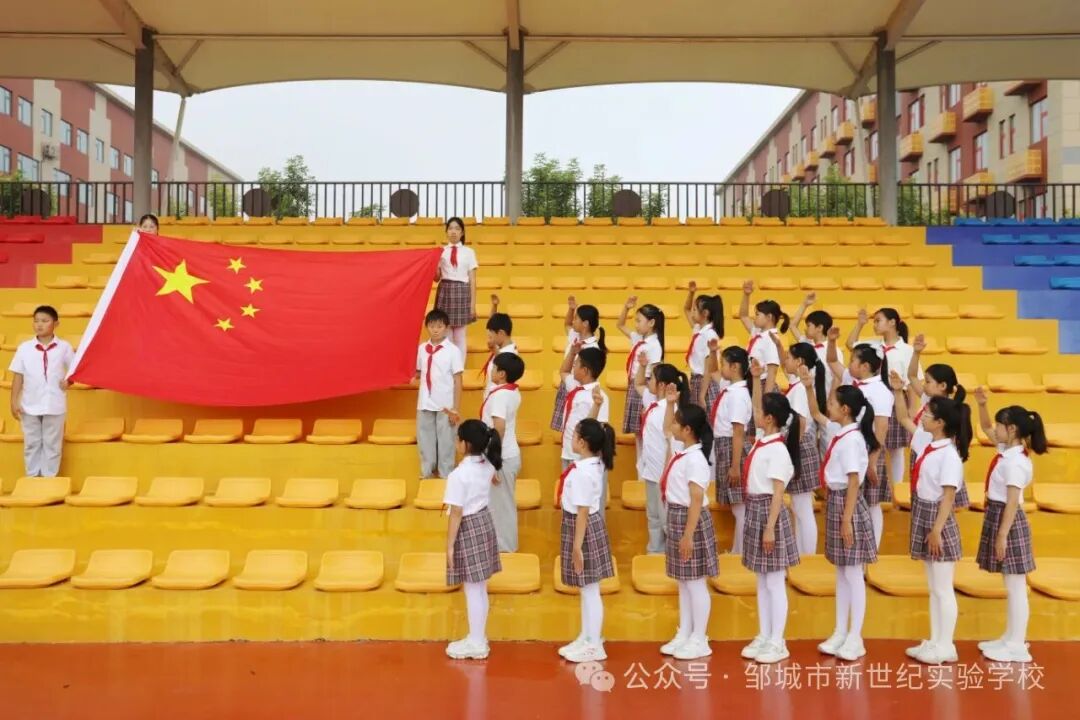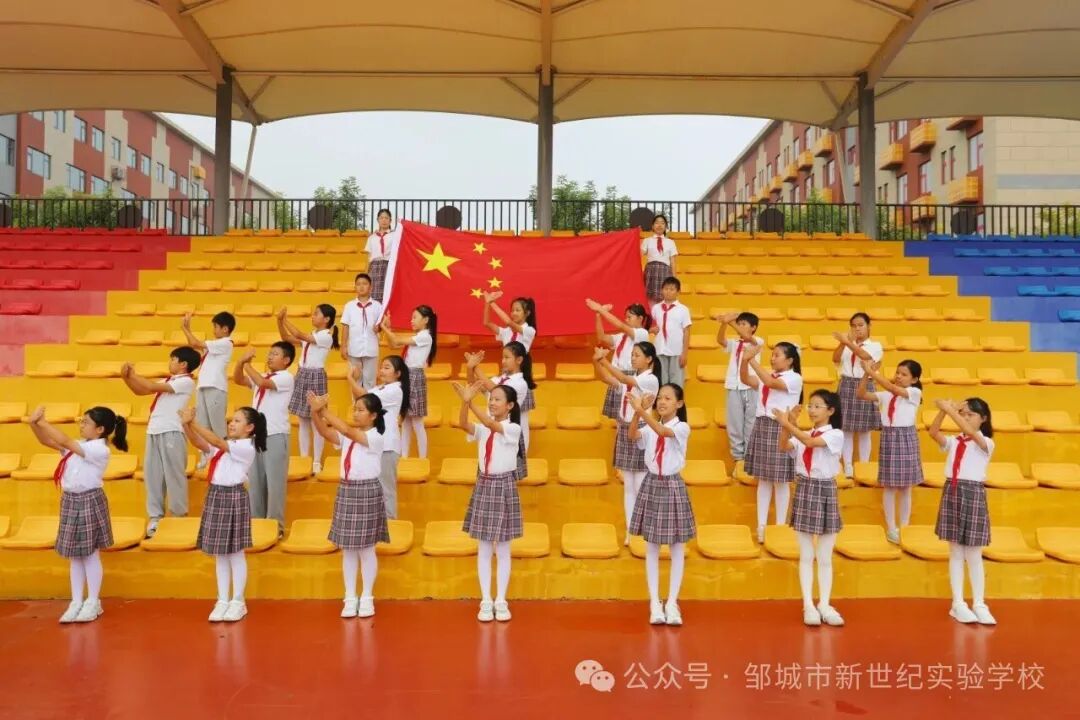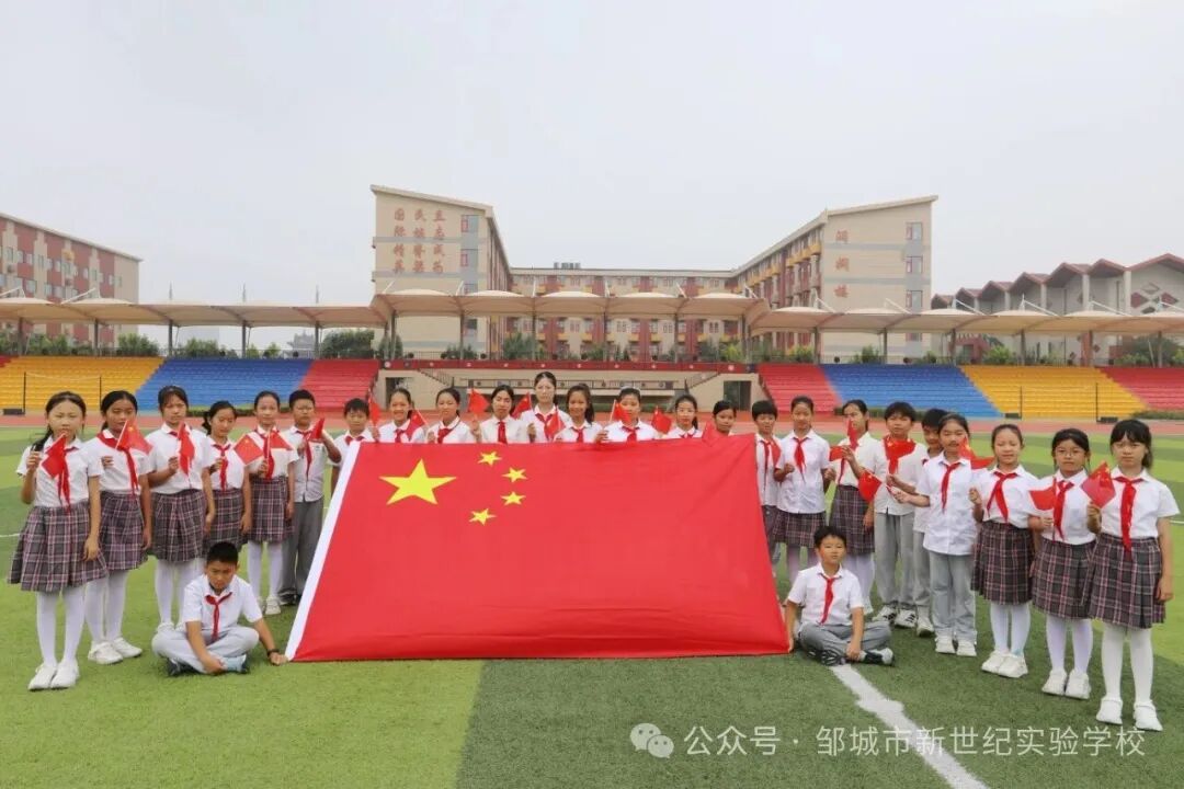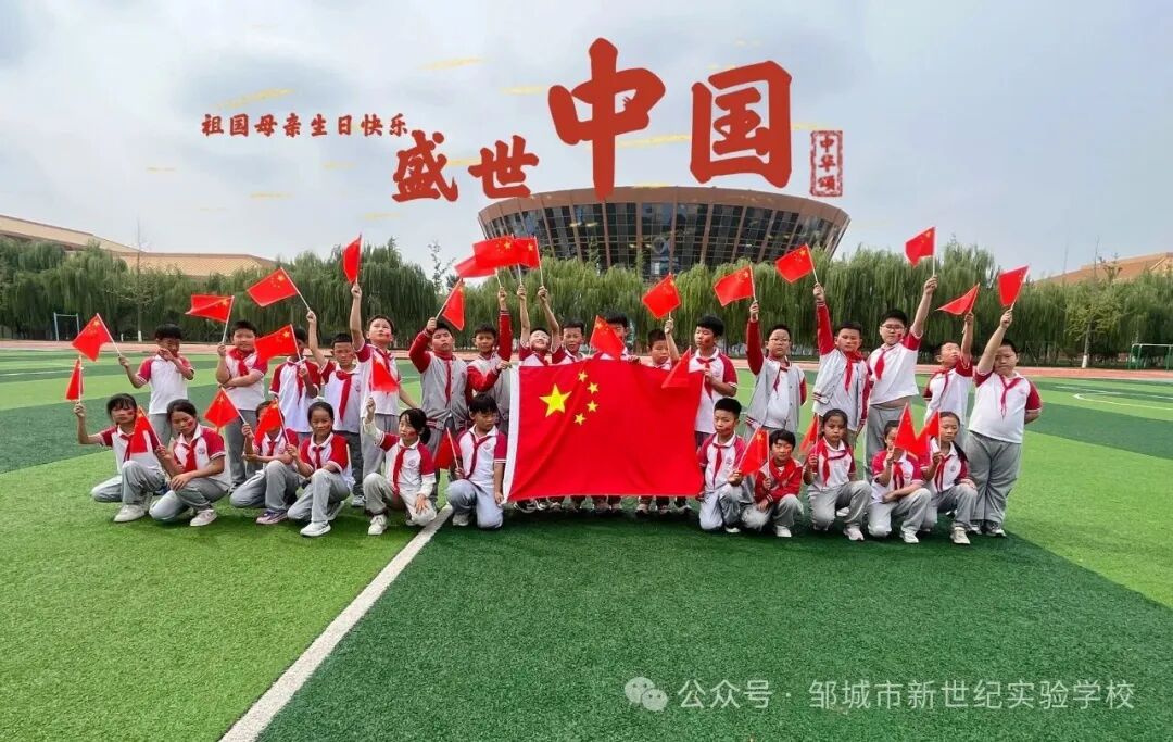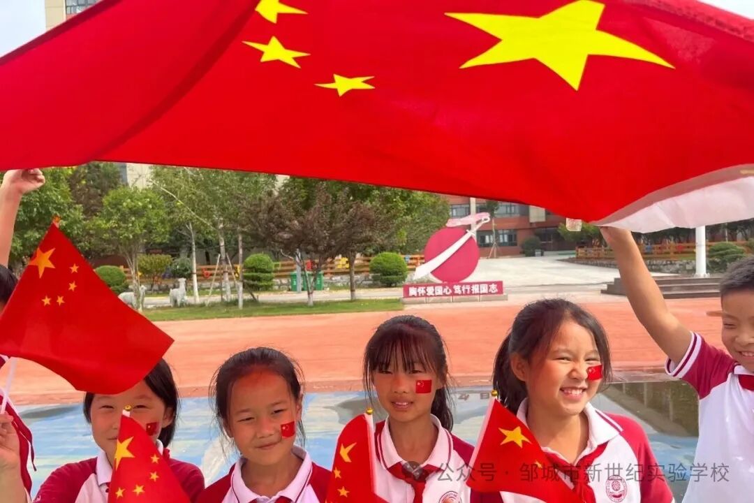 秋光潋滟,红旗招展。为庆祝中华人民共和国成立七十六周年,弘扬伟大的爱国主义精神,邹城市北大新世纪实验学校开展了爱国主题教育活动。