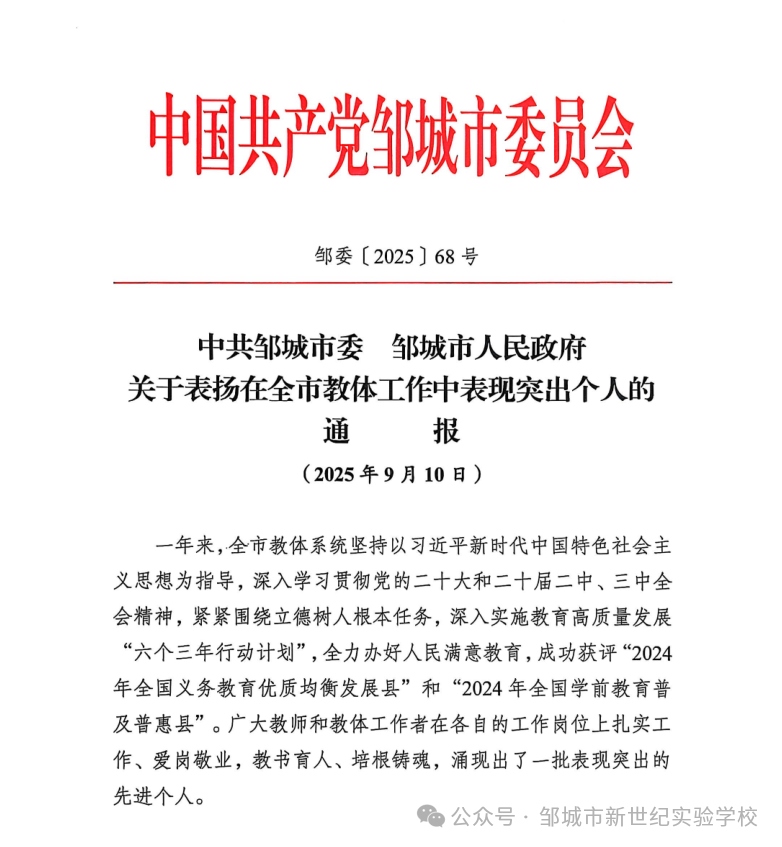 近日,邹城市教育系统表彰名单正式公布,我校教师凭借扎实的专业素养、卓越的教学能力与无私的奉献精神,在众多教育工作者中脱颖而出,斩获多项市级荣誉!这份荣誉,是对教师个人辛勤付出的最高肯定,更是学校教育教学质量稳步提升的有力见证。