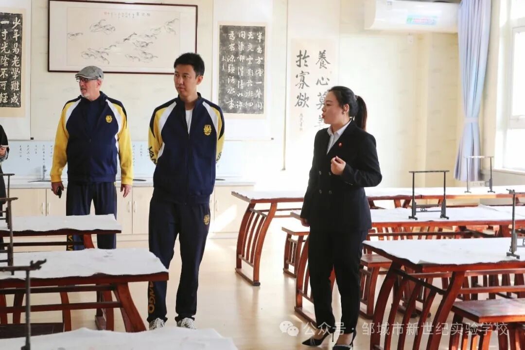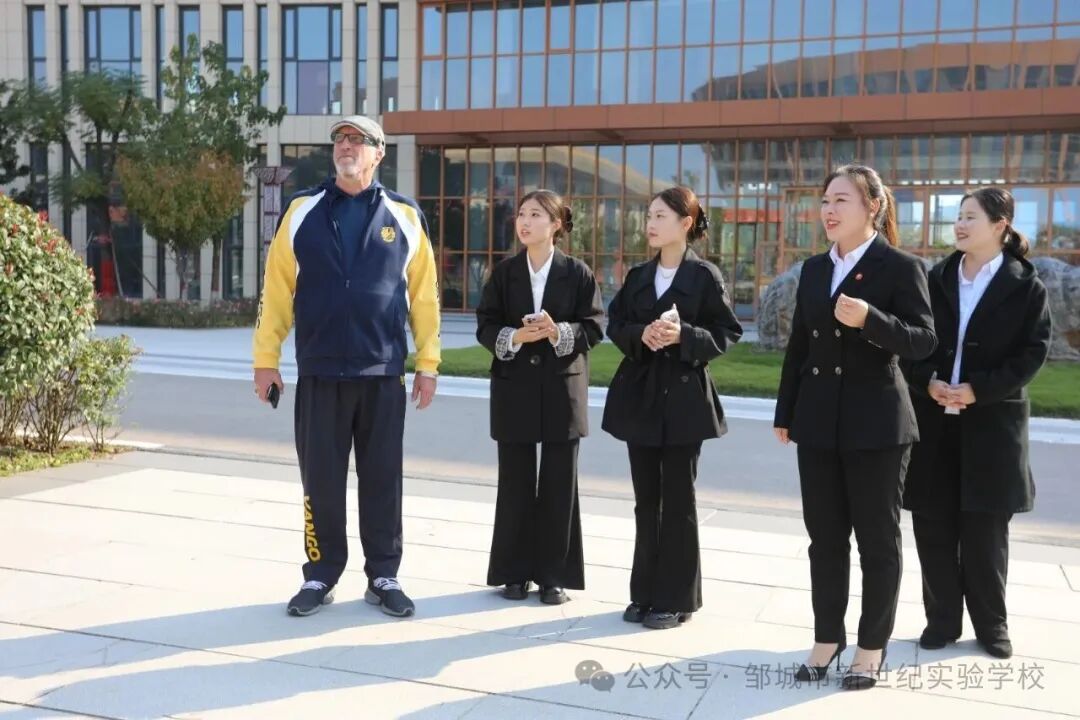万国击剑教练在我校领导陪同下,漫步校园操场、体育馆与社团活动室。沿途驻足观看学生课间活动,聆听社团发展介绍,对我校浓厚的艺术文化与社团的基础建设给予高度认可。