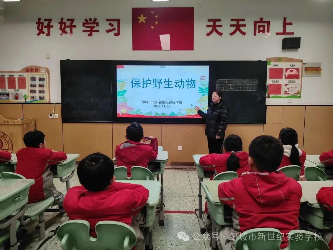 为进一步做好野生动物保护宣传工作,积极落实山东省2025年保护野生动物宣传月的活动号召,邹城市北大新世纪实验学校小学部开展“保护野生动物,争做新时代好队员”主题教育活动。