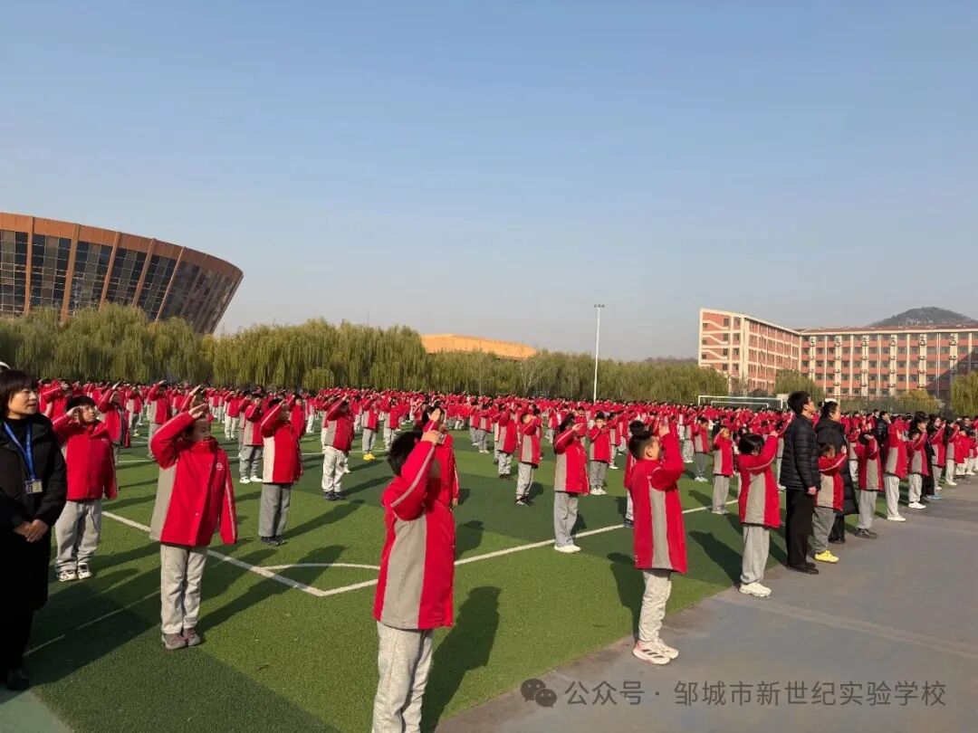迎着晨光,伴着清风,邹城市北大新世纪实验学校全体师生齐聚操场,举行庄严的升旗仪式,为新一周的校园生活注入奋进力量。